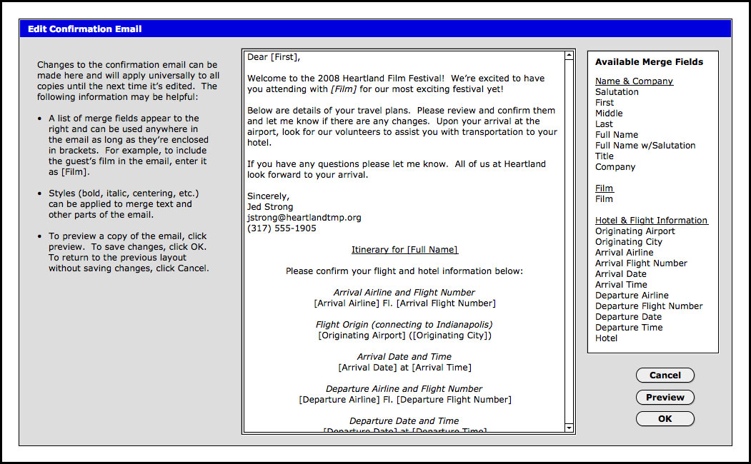 We take this into account from the planning phase, whether you need dynamic mail-merge style documents such as this confirmation email...